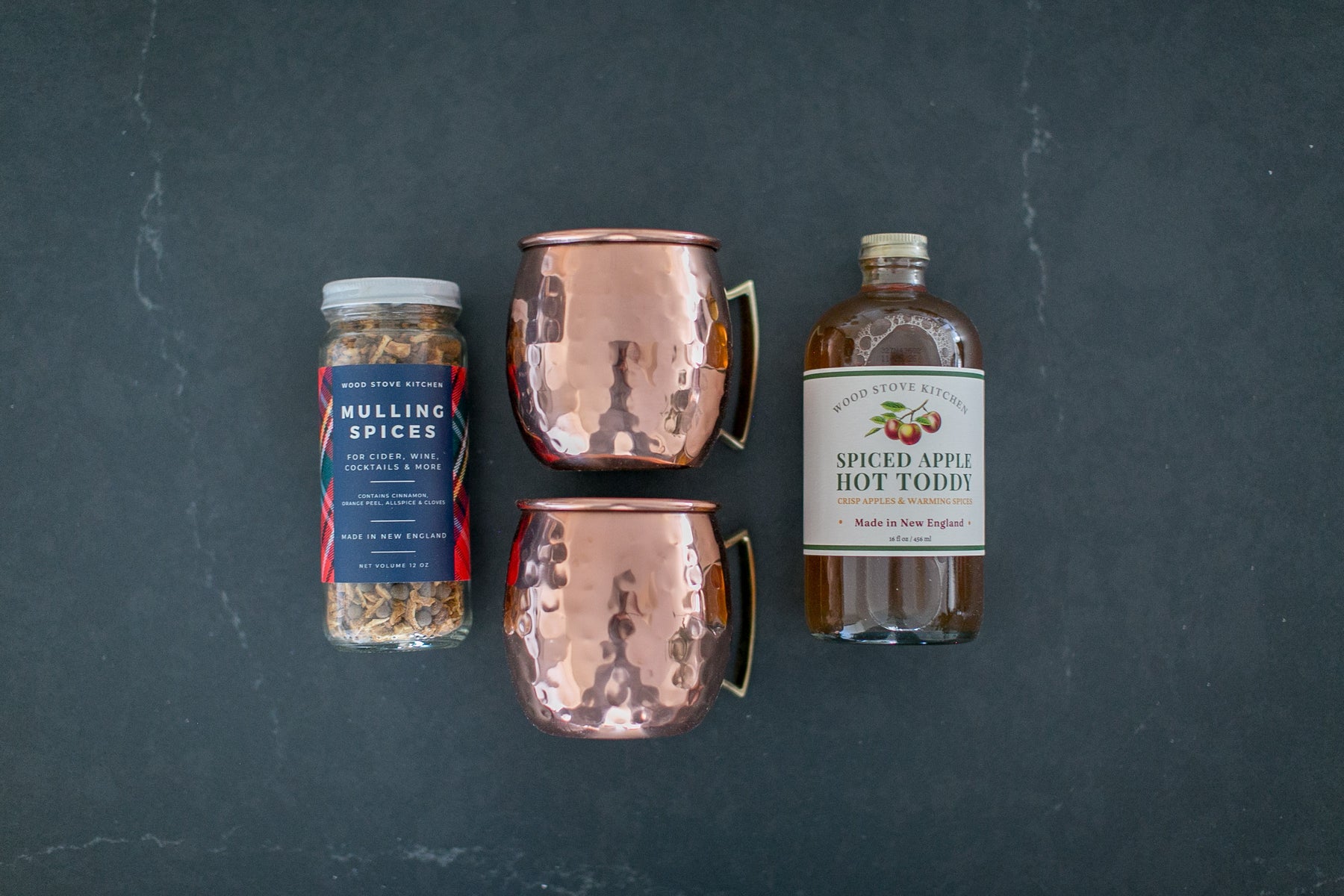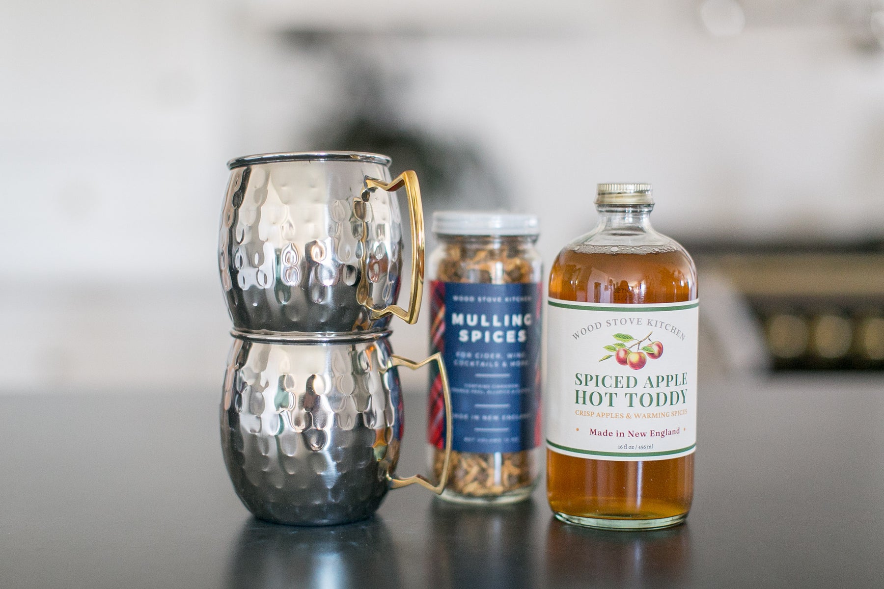Thomas captures the cozy spirit of a crisp evening — a nod to fireside gatherings and slow, meaningful moments. Inside, you’ll find Wood Stove Kitchen’s Spiced Apple Hot Toddy cocktail mixer, where crisp apples and warm holiday spices combine to make one unforgettable toddy. Enjoy it with hot water and a splash of whiskey, drizzle it into prosecco, or use it to craft autumn and holiday cocktails or mocktails of all kinds.